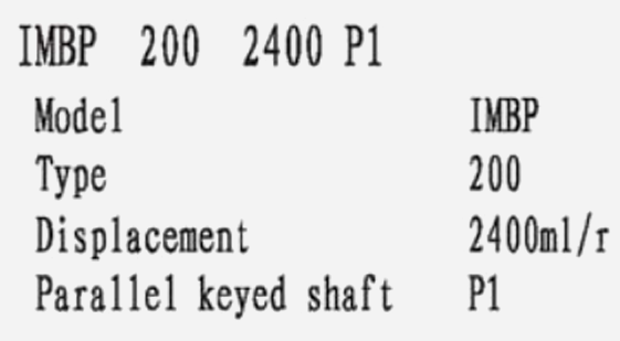 | TYPE | (ml/r) THEORISCH VERPLAATSING | (MPa) BEOORDEELD DRUK | (MPa) PIEK DRUK | (Nm) BEOORDEELD KOPPEL | (Nm/MPa) SPECIFIEK KOPPEL | (r/min) MLX.SNELHEID | (kW) BEOORDEELD PW | (kg) GEWICHT |